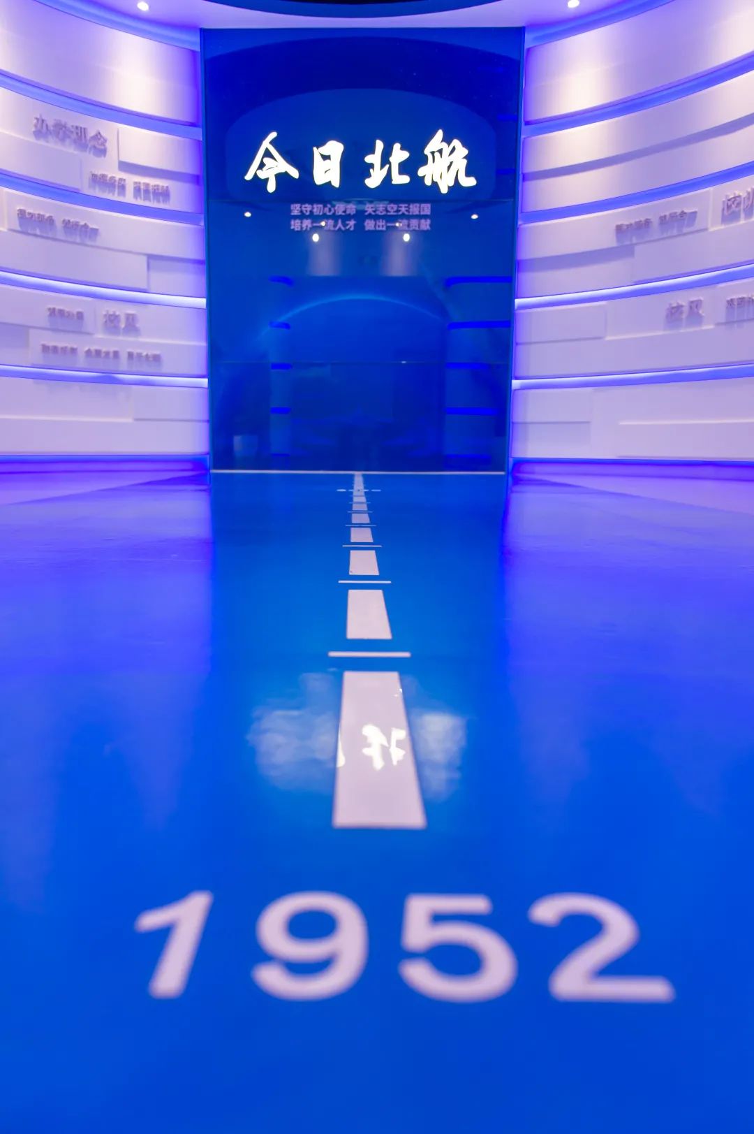 红色廊灯下的蓝色展厅,象征北航在中国共产党的领导下蒸蒸日上,茁壮成长。从团队队伍壮大,学校工作步入正轨,到先后进入211,985工程,入选国家“双一流”建设名单;从引入先进的学分制,新增系所研究室,到拓宽科研面,与世界一流大学展开交流合作……北航正朝着时代化、国际化的目标不断迈进。