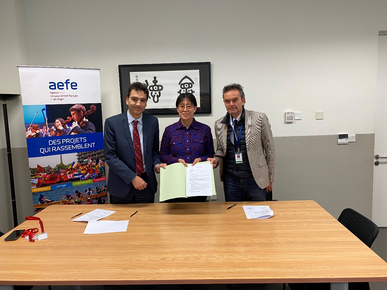 2019年11月29日,学院中方经理洪冠新、法方经理GENTY一行访问坐落于北京顺义区的北京法国戴高乐国际学校,并与董事长Villegas共同签署合作备忘录。未来双方拟在教师和员工交流方面开展合作,并在数学教学、工业科学教学方面展开全方面的合作。