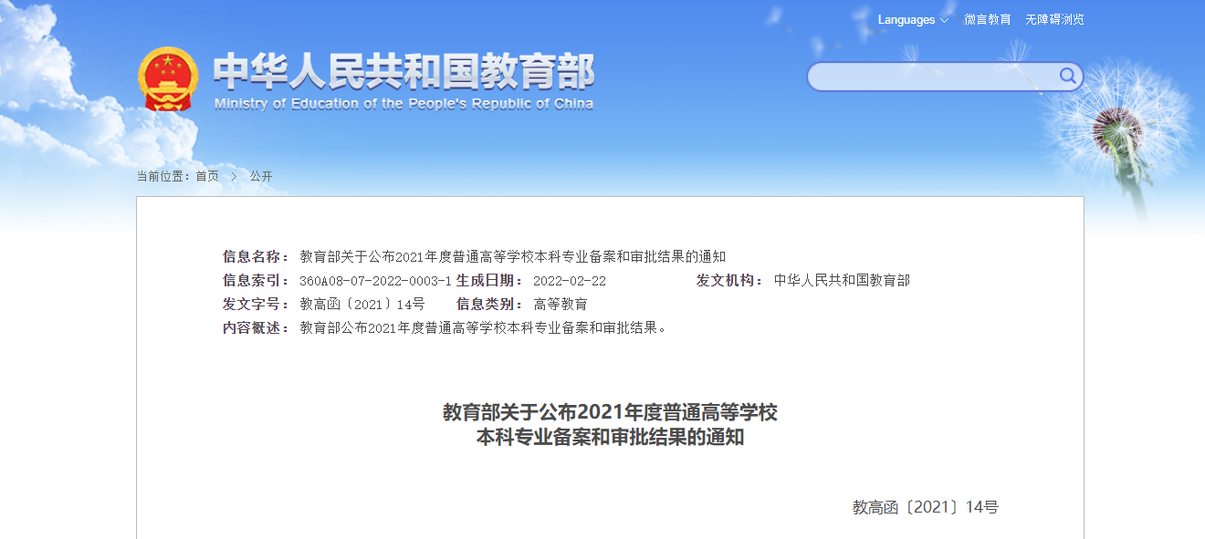 根据近日《教育部关于公布2021年度普通高等学校本科专业备案和审批结果的通知》(教高函〔2021〕14号)文件,公司william威廉中文官网和外国语学院联合...